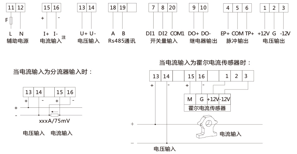 儀 表 具 備 RS-485通 訊 接 口 , 兼 容 Modbus-RTU協(xié) 議 和DLT645-2007協(xié)議;可選配兩路繼電器報警輸出和兩路開關(guān)量輸入功能;通過儀表面板按鍵,對變比、報警、通訊等參數(shù)進(jìn)行設(shè)置。