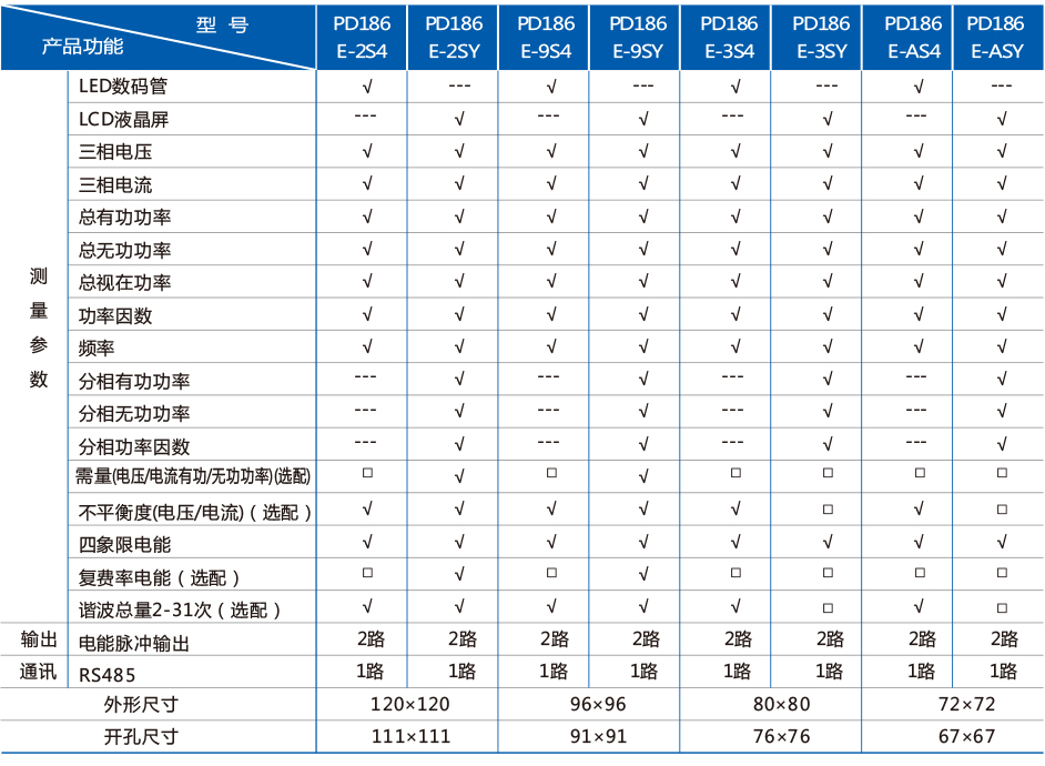 注:以上“√”表示該型號(hào)具備此項(xiàng)功能,“ ---”則表示不具備此功能, 。