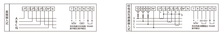 100A時(shí),需外配電流互感器和斷路器,通過儀表輸出的干接點(diǎn)信號(hào)控制斷路器實(shí)現(xiàn)通斷操作。
