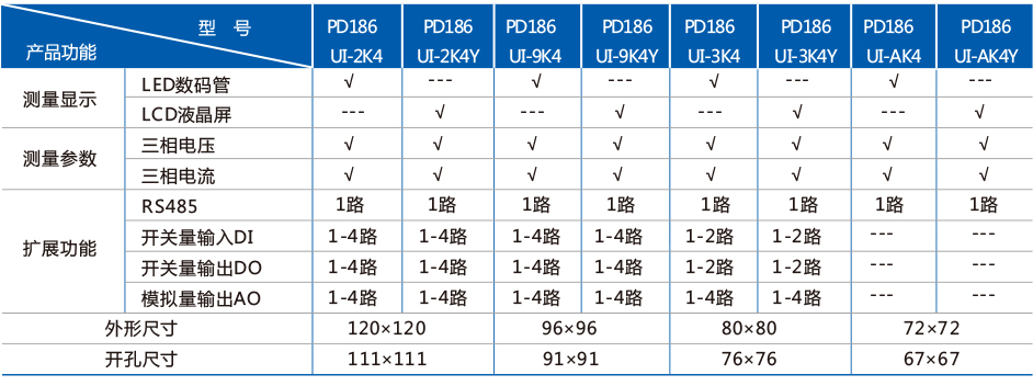 型號:PD186UI-9K4(三相電壓電流組合表)